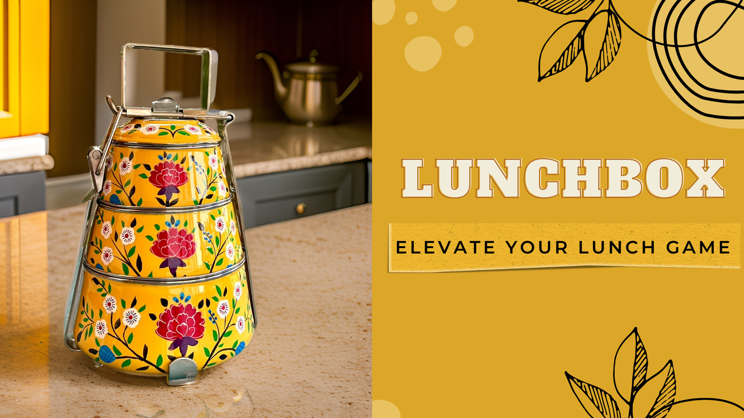 Peach Yellow hand painted 2 Tier Stainless Steel Tiffin