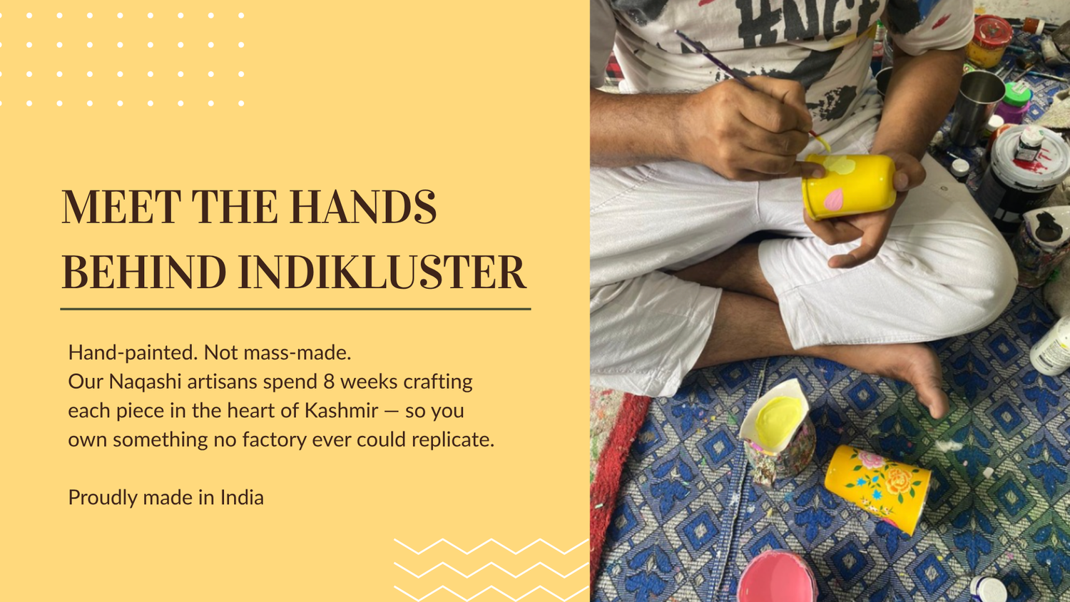 We believe in creating beautiful and functional products. Our products embody both aesthetics and utility like a perfect marriage. We create sustainable products that do not harm the environment or the user. We bring you intricate designs that are unique and versatile made by artisans from various craft clusters across India. Our products are handmade with love and designed to last.