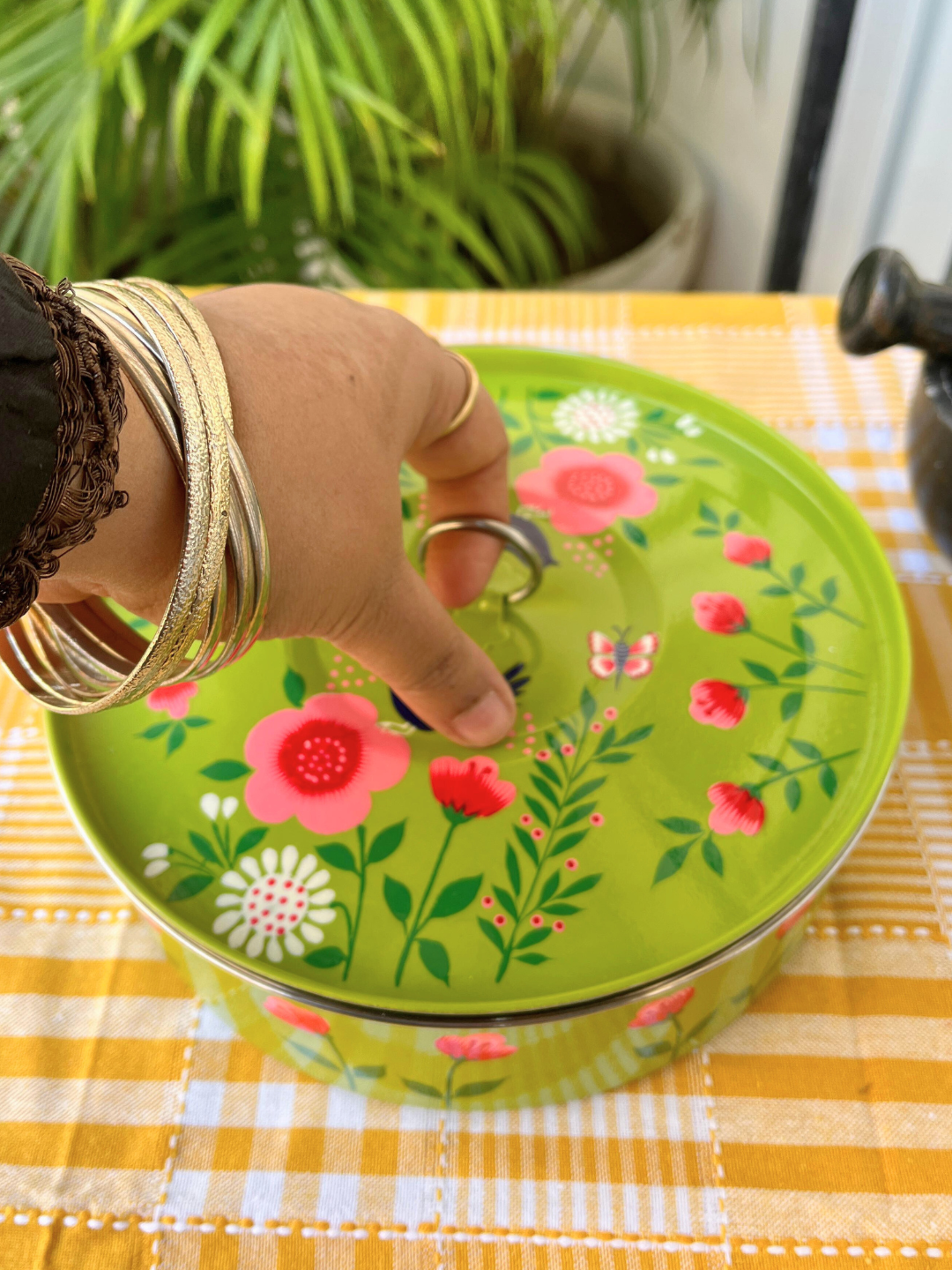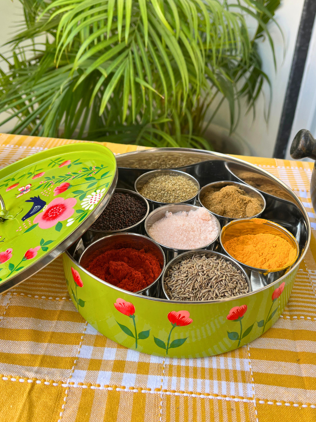 This beautifully hand painted masala box, adorned with delicate garden patterns, holds a fragrant treasure trove of spices. It's become a cherished heirloom in every home, adding a touch of magic to our daily meals and symbolizing our love for Blossom Haven. 🌼❤️