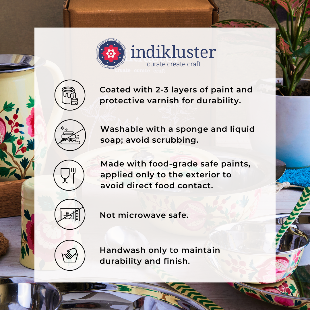 Disclaimer: Since this piece is painted freehand, it might have slight irregularities in colour and pattern, which only add to the charm of the product.
